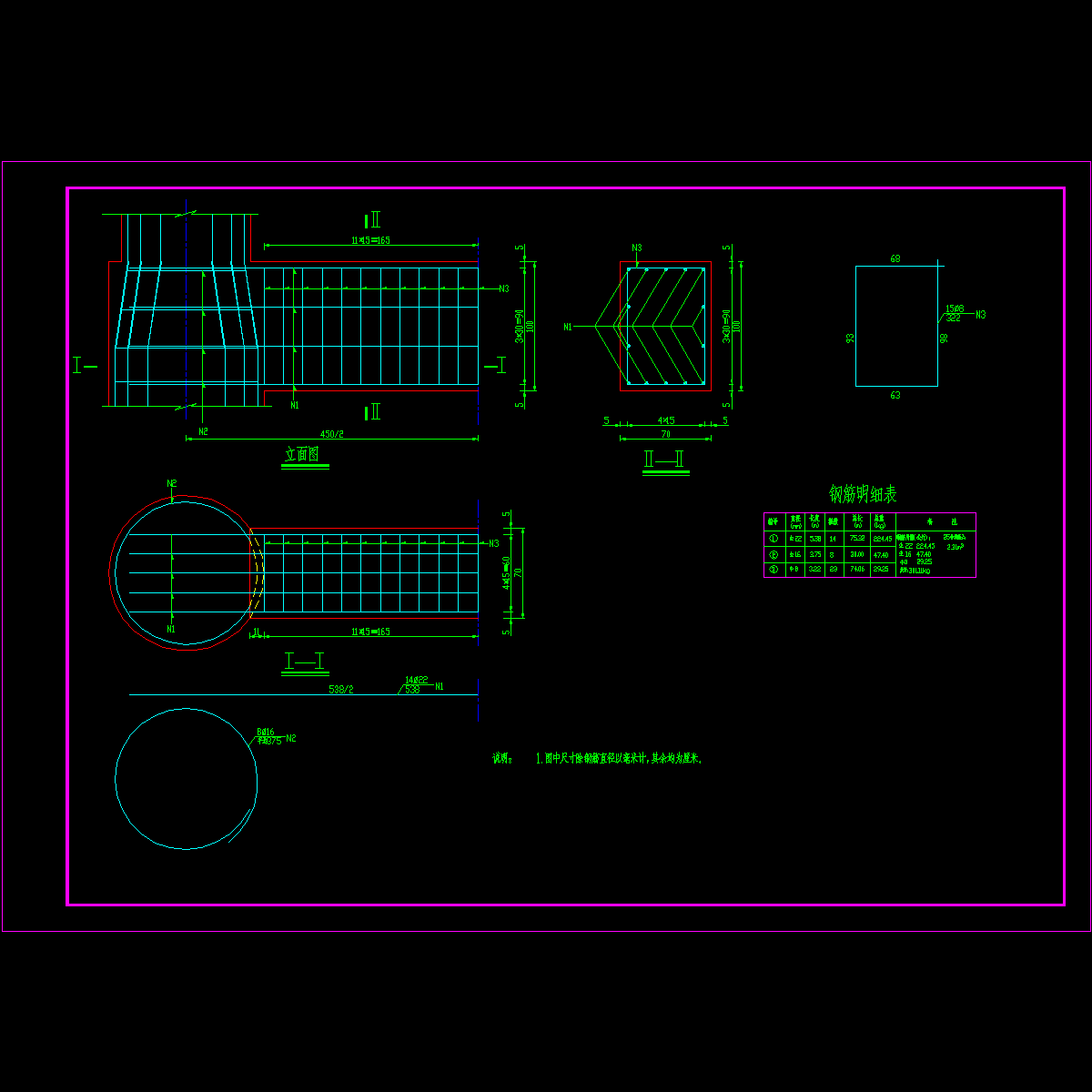 - 2×22.25m连续钢箱梁人行天桥CAD施工图纸54张(独柱墩嵌岩桩甲级院).dwg