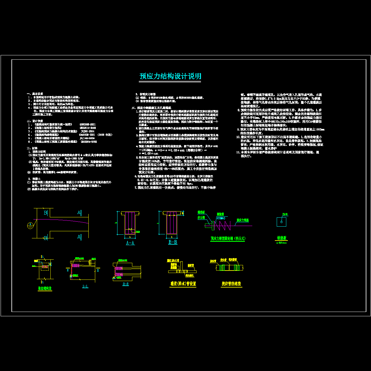 预应力结构设计说明及节点构造CAD详图纸.dwg