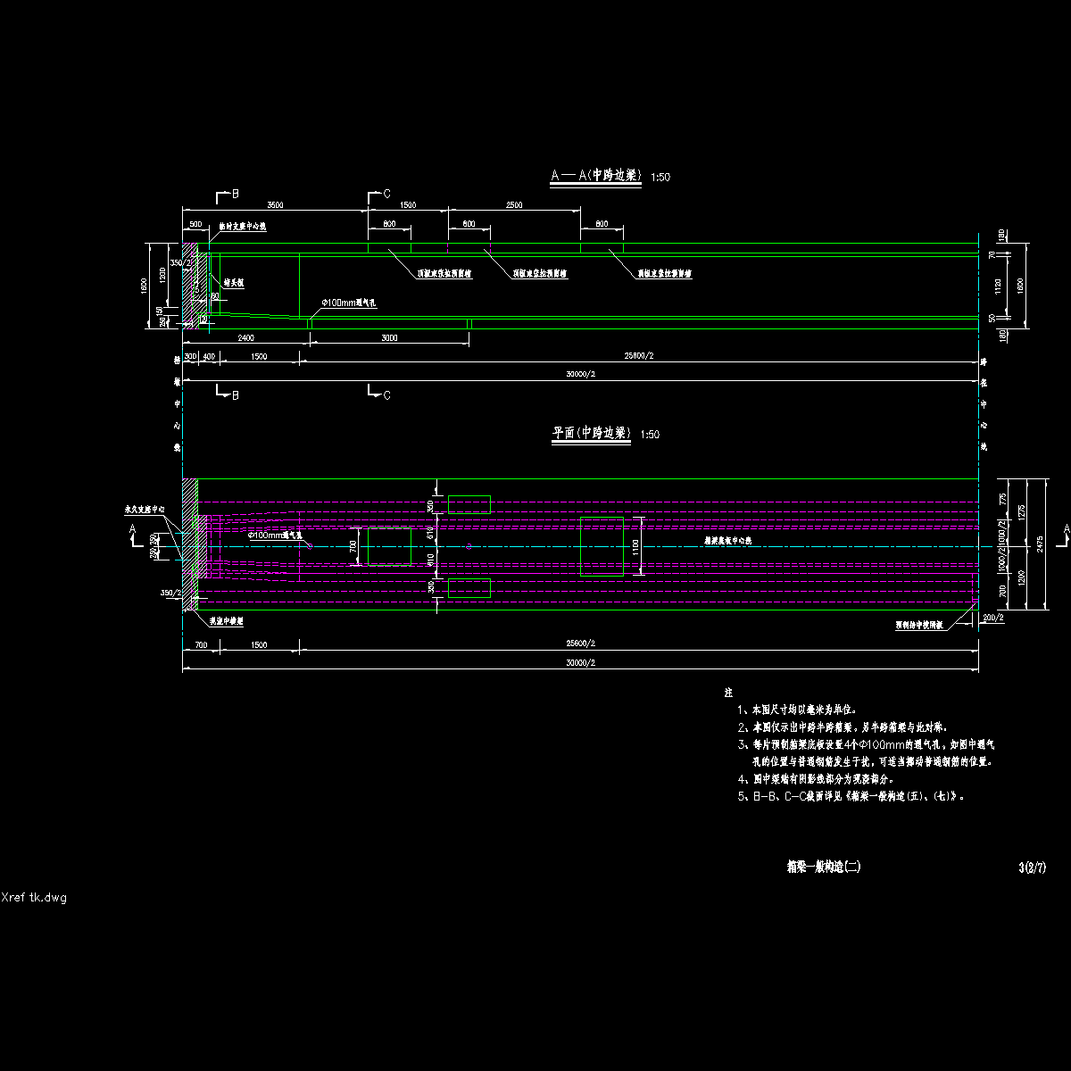 - 2×25m现浇预应力混凝土箱形连续梁桥上部构造通用图纸87张(梁高1.35m).dwg