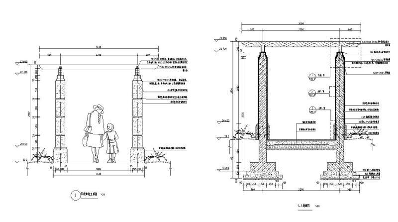 - 景观设计深度大样图示-自行车入口廊架CAD详大样图