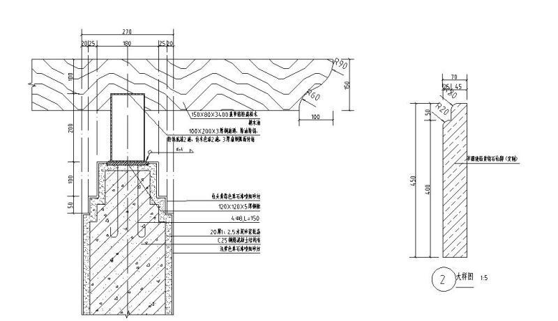 - 滨水防腐木廊架施工CAD图纸,含节点大样