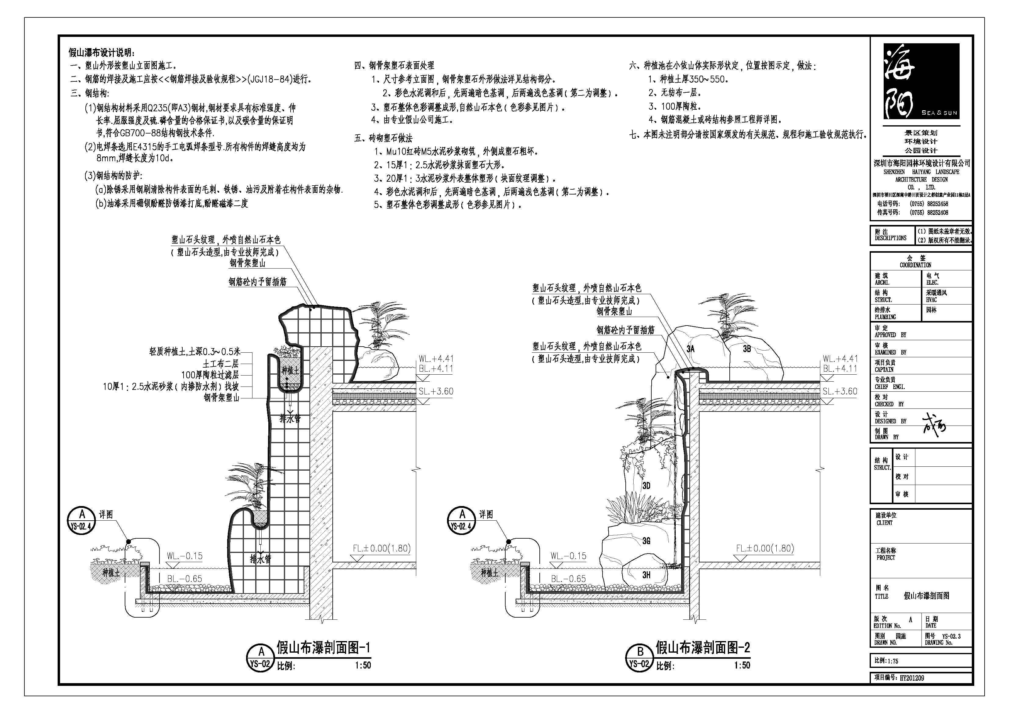- 塑石瀑布假山施工详细设计CAD图纸(平面图)