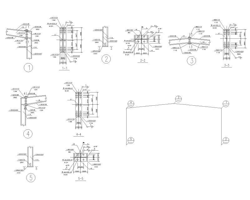 - 20米跨门刚结构家具厂厂房结构CAD施工图纸