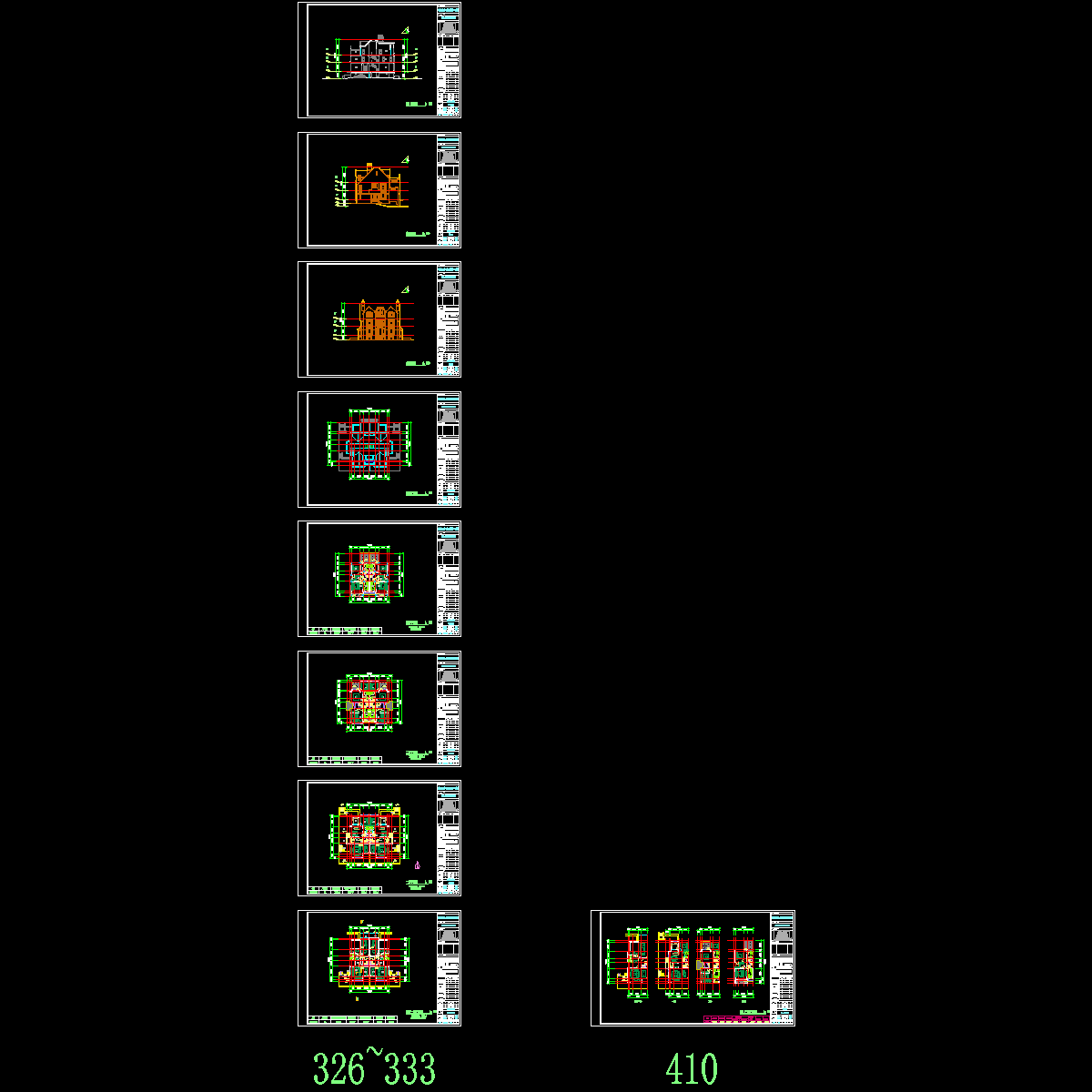 - 3层西班牙双拼别墅建筑方案设计CAD初设图纸(390平方米)