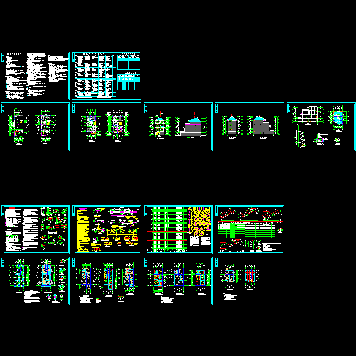 - 3层中式住宅别墅建筑结构水电施工CAD图纸