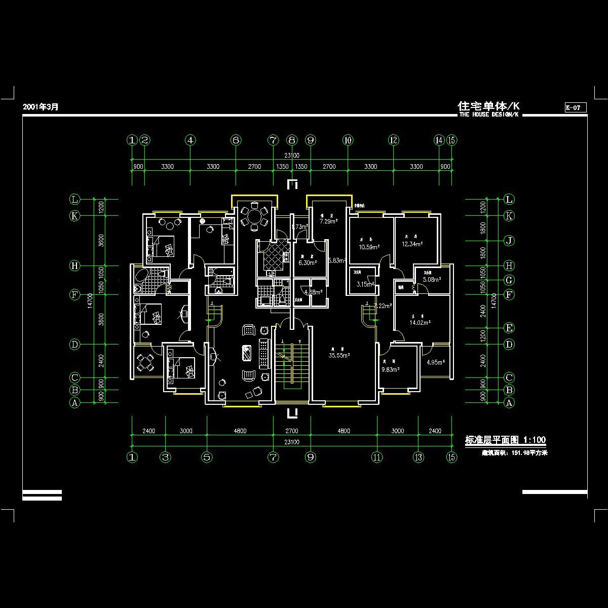 - 板式多层一梯二户五室三厅三卫有跃层户型CAD图纸