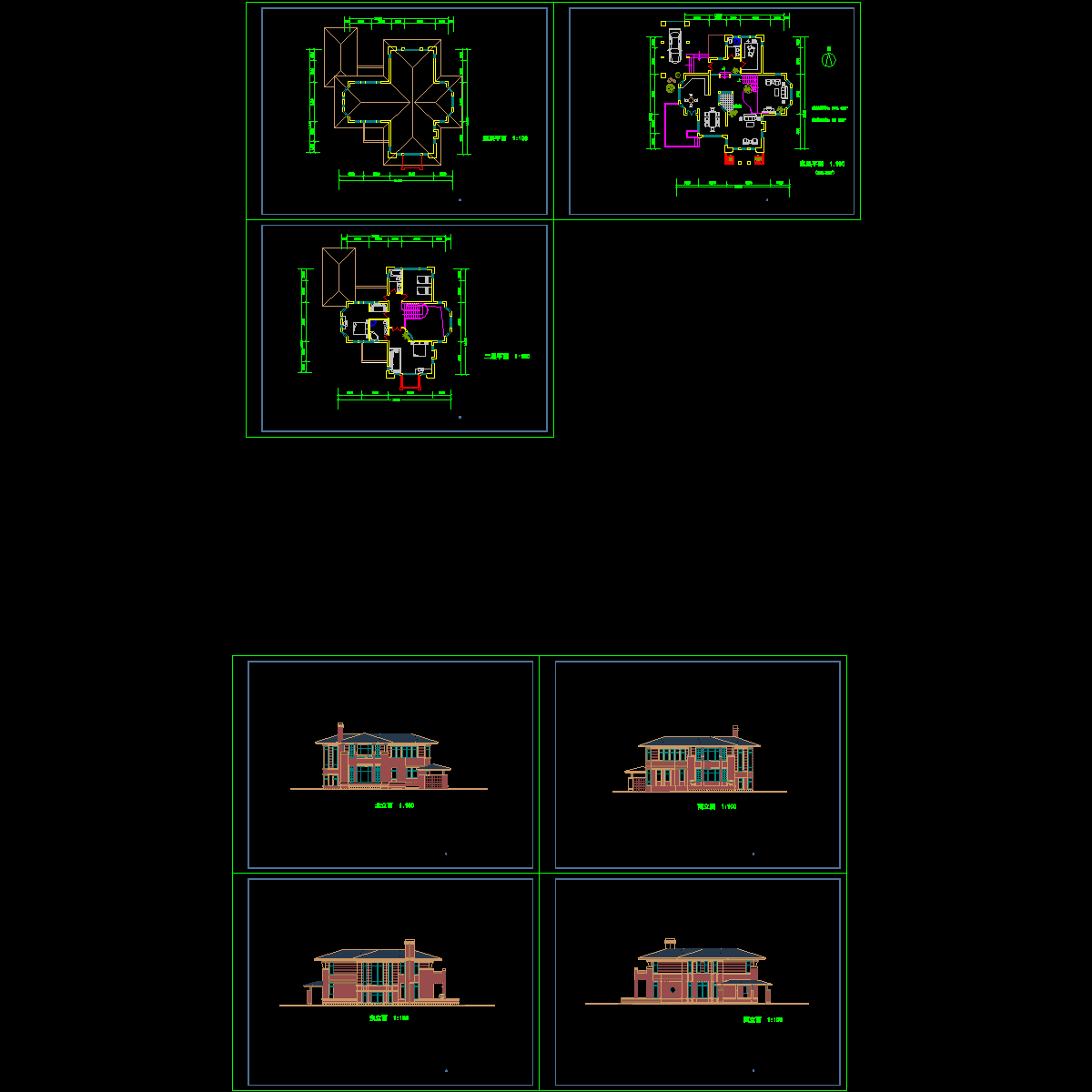 - 港湾别墅区3层别墅建筑设计CAD图纸(初设图纸)