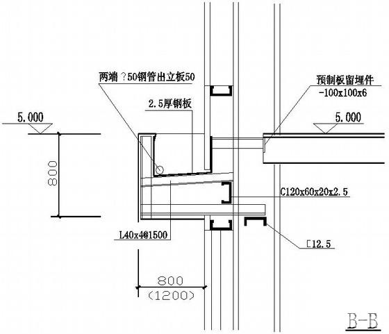 - 800雨蓬大样(墙架在内)节点构造详细设计CAD图纸