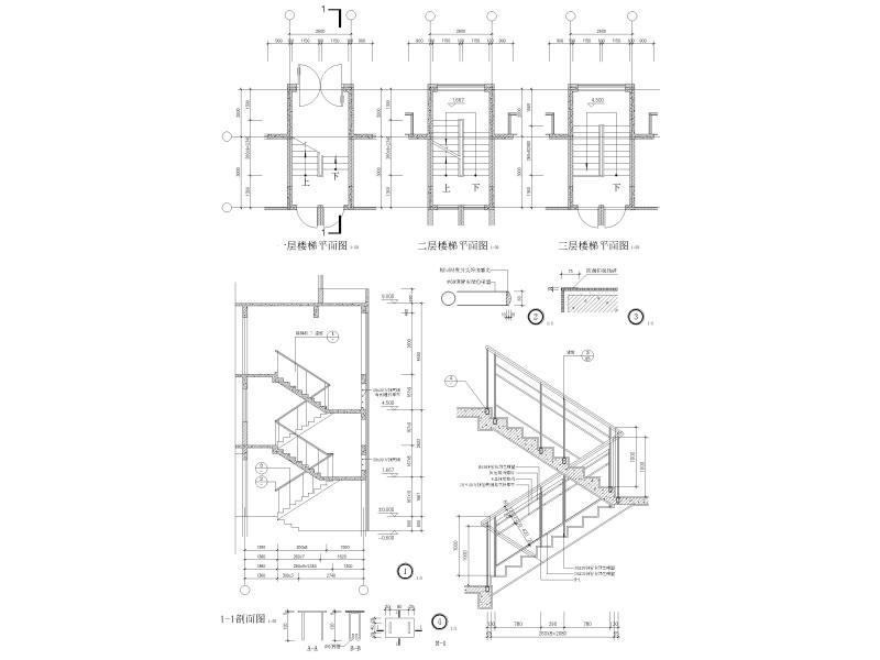 - 楼梯建筑施工节点构造详图纸平面图及立面图