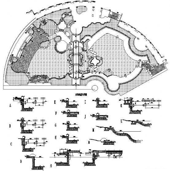 特色水池设计施工图纸平面图及断面图