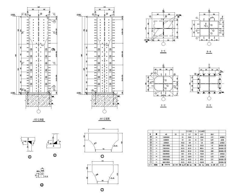 - 斜拉大桥主塔劲性骨架钢筋节点CAD详图纸