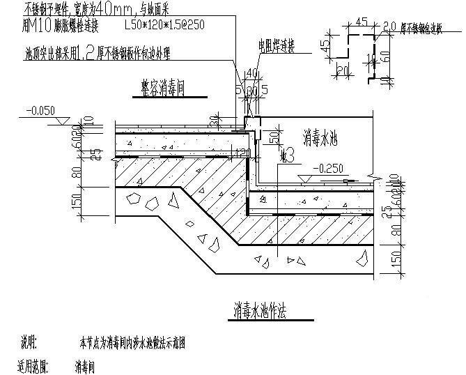 消毒间内涉水池做法示意节点构造设计详图纸