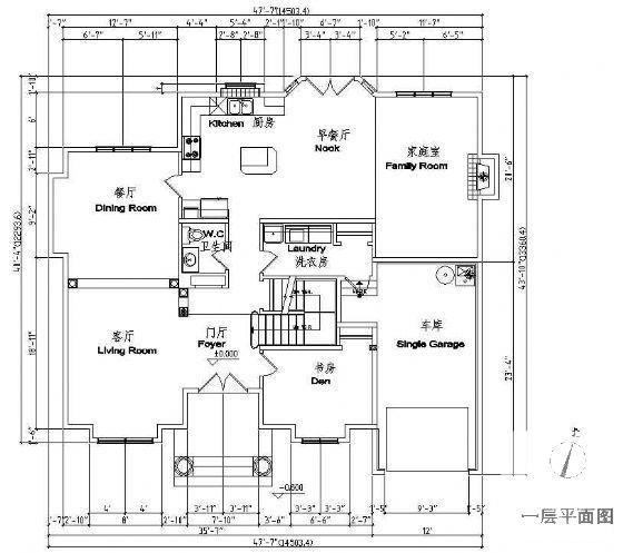 - 2层欧式别墅建筑设计CAD图纸(经典大方)