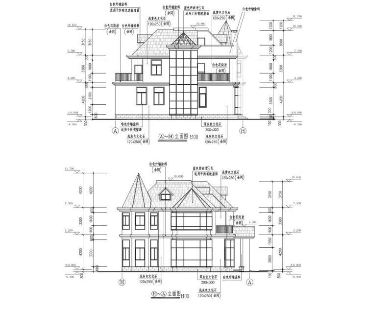 - 2层半400平乡村别墅CAD施工图纸带效果图