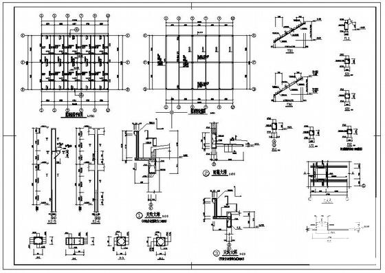 - 框排架结构研发车间及附件车间和钣金车间结构CAD施工图纸(建筑)