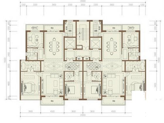 - 板式多层一梯两户三室两厅两卫户型CAD图纸