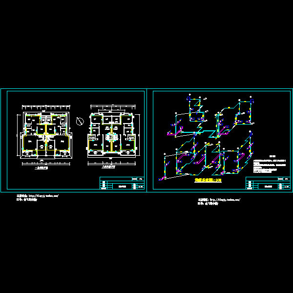 10套双拼别墅给排水电气设计CAD施工图纸打包