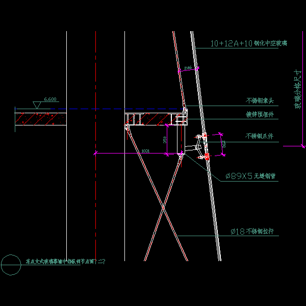 - 点支式玻璃幕墙中部纵剖节点构造CAD详图纸(五)