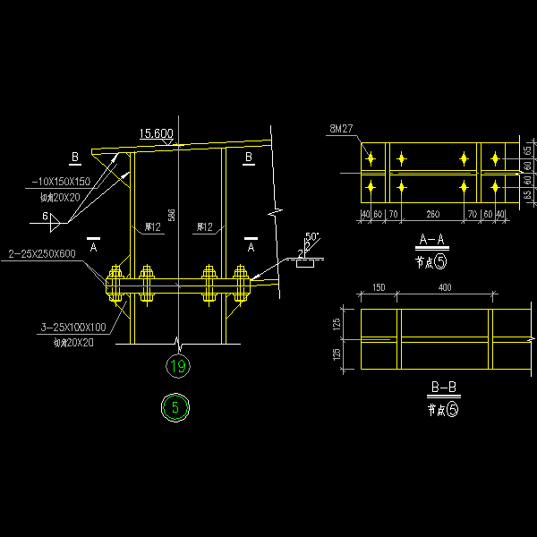 400X250屋面梁柱连接节点构造详细设计CAD图纸