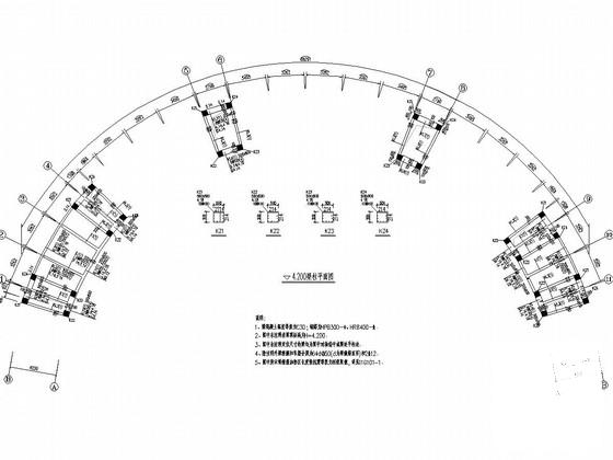 - 钢筋砼框架结构弧形大门结构CAD施工图纸