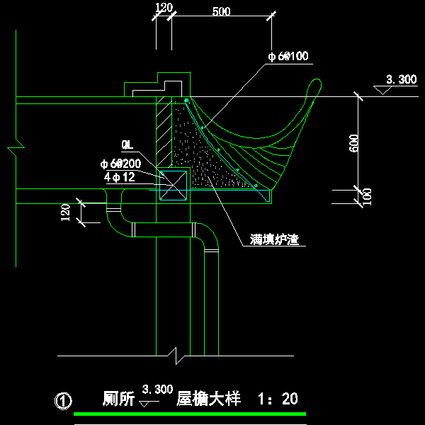 - 四角古典式厕所详细设计CAD图纸(给水系统图)