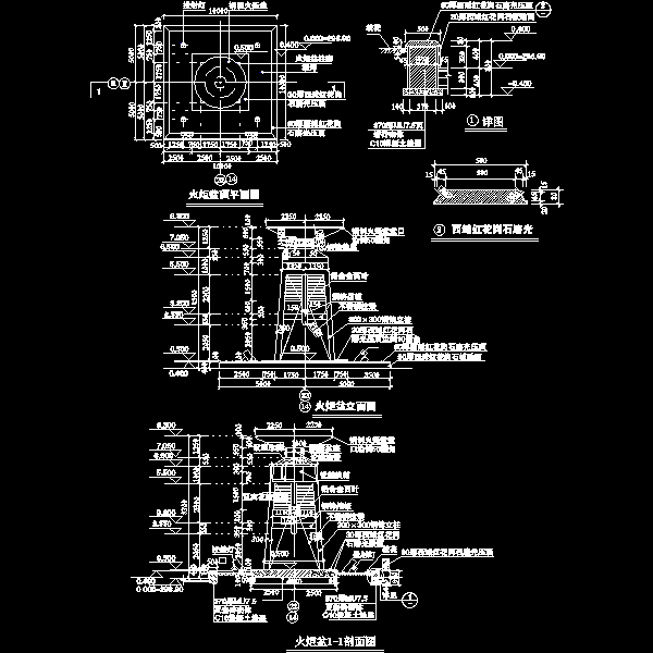 火炬盆施工节点详图纸顶面图及平面图,立面图