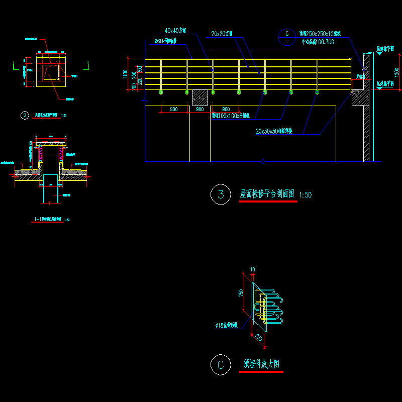 - 屋面检修平台节点构造CAD详图纸(dwg)