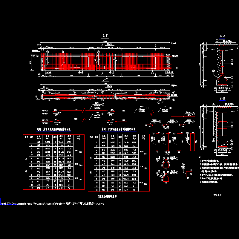 预应力混凝土连续梁桥T梁梁肋钢筋布置CAD图纸(L=25m)