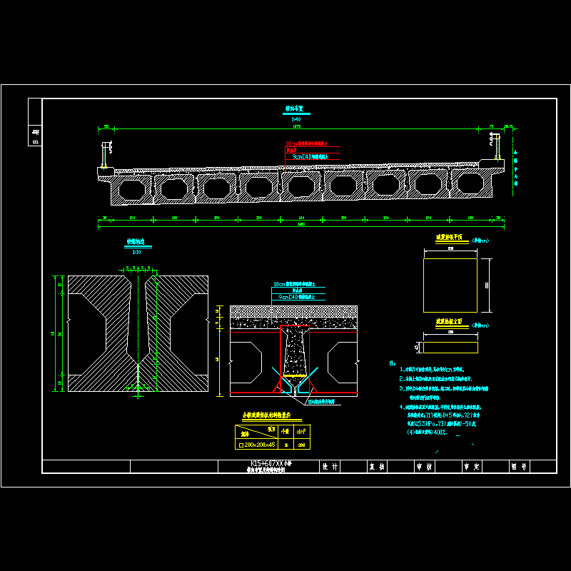 - 2×10m预应力混凝土简支空心板桥简支板CAD施工方案图纸设计