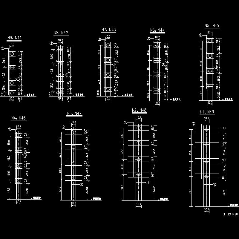 - 30m预应力混凝土连续T梁中跨中梁定位钢筋布置节点CAD详图纸设计