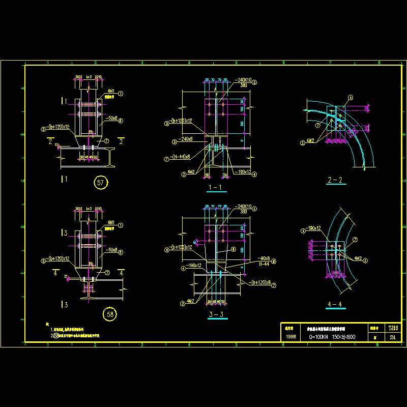 - 曲轨梁与钢梁联结节点构造CAD详图纸
