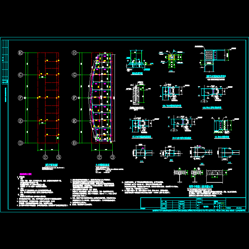- 2层大学活动中心舞台钢结构设计CAD施工图纸