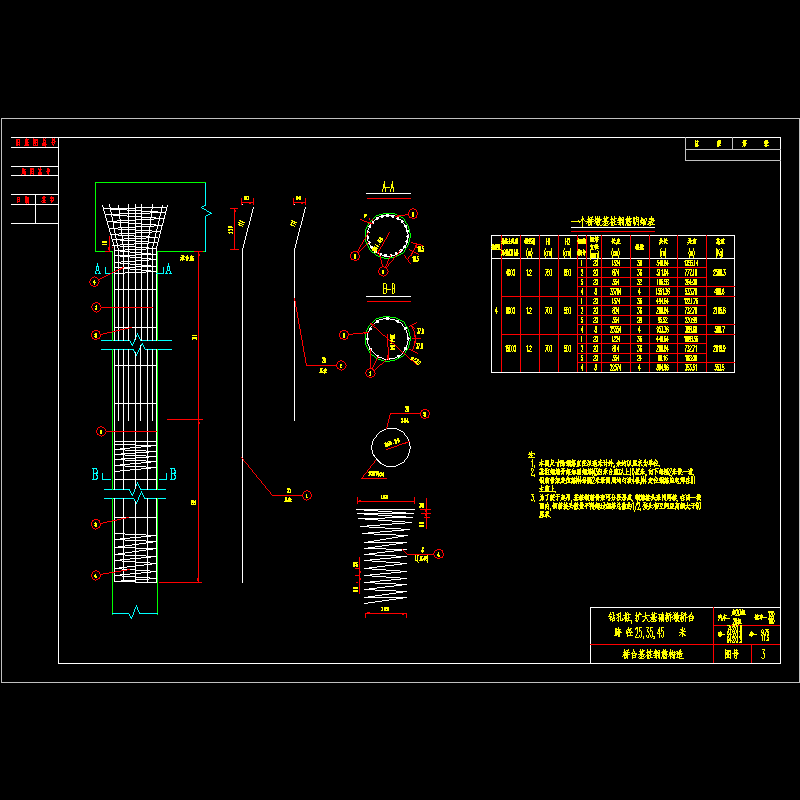 - 预应力混凝土T梁连续刚构桥墩基桩钢筋布置节点CAD详图纸设计